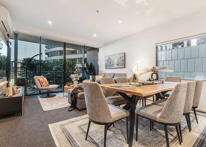 メルボルン Vaquay Anchor & Abode In Docklandsヴィラは、宿泊から3.1キロメートル離れたアレクサンドラ庭園などの自然スポットへ行きやすいし、プールも提供しています。